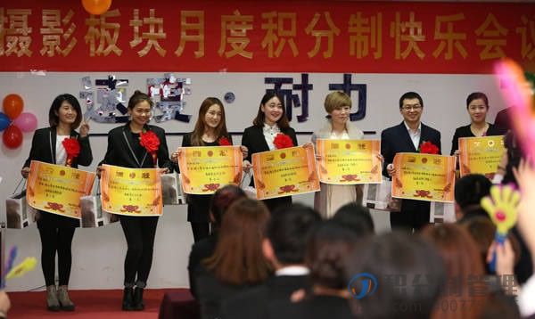 婚纱摄影版块2月份积分制管理模式各序列排名第一的伙伴们纷纷走上舞台领取奖励。